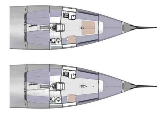 Das Deckslayout setzt auf optimale Bewegungsfreiheit mit einem hindernisfreien Flushdeck im Vorschiff und einem unauffälligen, aber funktionalen Sonnendeck. Eine weiche, rutschfeste Beschichtung ist als Option für anstrengende Manöver erhältlich.