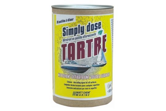 SIMPLY TARTRE wird in Form von kompakten roten Tabletten mit Zitronenduft angeboten, die zu 100 % aus aktiven Stoffen bestehen. Verpackt in einer recycelbaren Kartonverpackung, zielt das Produkt auf einen geringen Platzbedarf ab, ein heikler Punkt an Bord. Die zubereitete Lösung kann bis zu 15 Tage aufbewahrt werden.