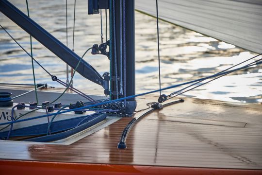 Holz wird hier als modernes Strukturmaterial und nicht als Referenz für das Erbe verwendet. Für den Segler bedeutet dies ein Gefühl von Solidität und ein vorhersehbares Seeverhalten. Im Gegenzug erfordert Holz eine sorgfältige Überwachung im Laufe der Zeit, auch wenn die heutigen Techniken schwere Eingriffe begrenzen.