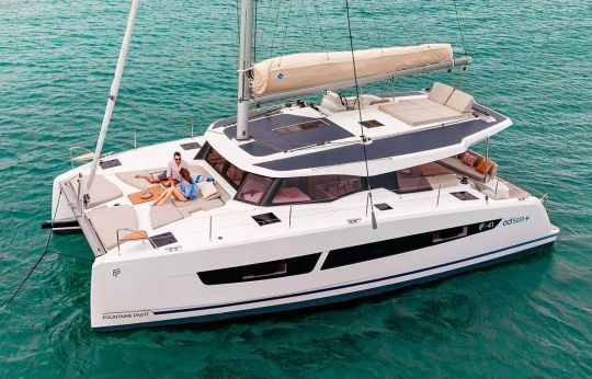Die FP41 wird als Eignerversion, bei der der Backbordrumpf zur Suite umgebaut wird, oder als Vierkabinenversion angeboten. Die diagonal angeordneten Betten sind eines der Markenzeichen der Baureihe und sorgen für eine bessere Zirkulation und ein größeres Raumgefühl in den Kabinen.