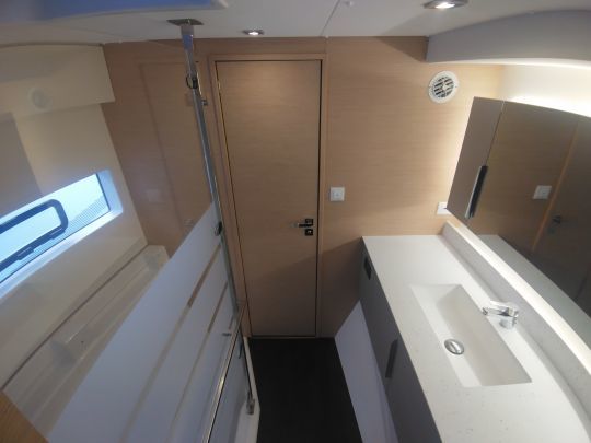 Die Eignerversion beeindruckt durch ihre Geräumigkeit. Die vordere Nasszelle mit einer großen, separaten Dusche übertrifft alles, was man normalerweise auf einem 40-Fuß-Schiff findet. Die vorderen Kabinen profitieren von großen Bullaugen und einer effizienten natürlichen Belüftung.