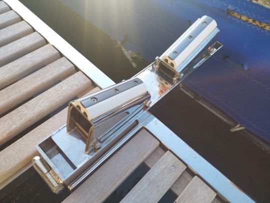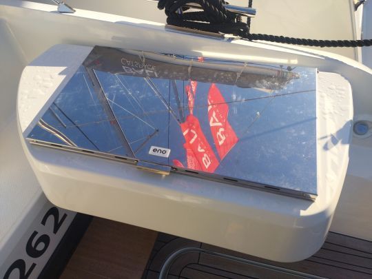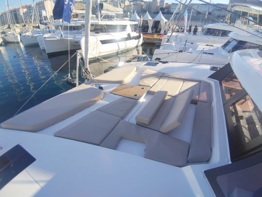 Das FP41 räumt der Gewinnung von Solarenergie einen wichtigen Platz ein. Bis zu 2.000 Watt an Paneelen können auf dem Deckshaus integriert werden, mit der Möglichkeit, weitere 300 Watt auf dem Vorschiff hinzuzufügen. Eine beachtliche Fläche für einen Katamaran dieser Größe, die zur Autonomie am Ankerplatz beiträgt.