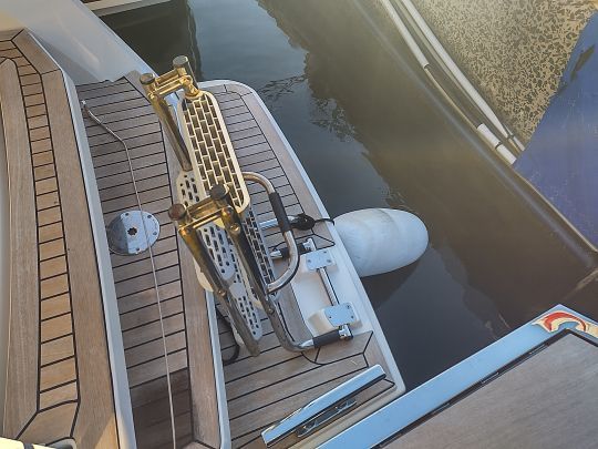 Das FP41 zeichnet sich auch durch die Möglichkeit aus, eine elektrische Heckplattform zu wählen, eine in diesem Segment noch seltene Lösung. Mithilfe der kippbaren Galeeren kann das Beiboot unter die Wasseroberfläche abgesenkt werden, oder es kann ein niedriger Strand zum Baden geschaffen werden, der etwa 30 bis 40 Zentimeter unter dem Meeresspiegel liegt.