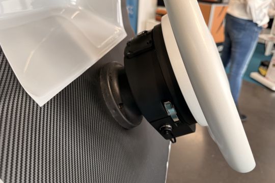 Das Prinzip beruht auf einem motorisierten Lenkrad, in dem alle für die automatische Steuerung erforderlichen Komponenten zusammengefasst sind. Der Motor, die Sensoren und die Steuerelektronik sind in einem einzigen Teil integriert. Eine externe Rechenzentrale oder ein separater Aktuator sind nicht erforderlich.