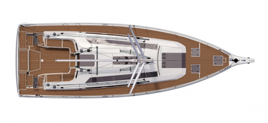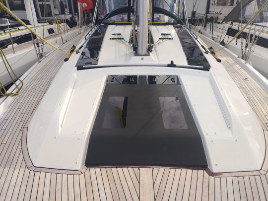Im Heck befindet sich das klassische Dufour-Layout, d. h. eine versenkbare Plattform und eine Cockpitküche mit Plancha und Spüle. Eine Konfiguration mit Davit ermöglicht das Heben eines hohen Beibootes, was bei einem schweren Beiboot oder einem Beiboot mit starrem Boden interessant ist.