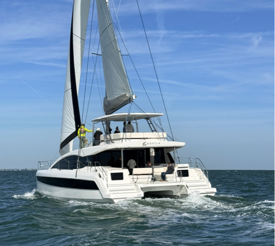 Die Aquila 50 Sail, die im Februar 2026 auf der Miami International Boat Show vorgestellt wurde, markiert den Einstieg der Werft in das Segment der Hochseesegelkatamarane. Mit diesem etwa 15 Meter langen Mehrrumpfboot wird eine neue Linie eingeweiht, die eine Reihe von Powercats ergänzen soll.