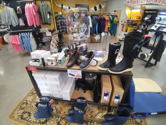 Das Geschäft bietet mehr als 44.000 Artikel an, die sofort verfügbar sind, da das Geschäft an das Logistiklager angrenzt, das die verschiedenen Marken der Gruppe beliefert. Diese Menge betrifft verschiedene Bereiche der Freizeitgestaltung: Bootszubehör, technische Ausrüstung, Navigationszubehör oder Material für Wassersportaktivitäten.
