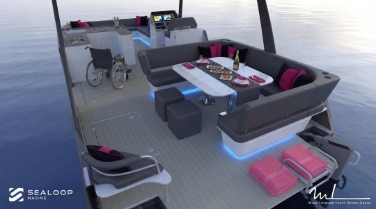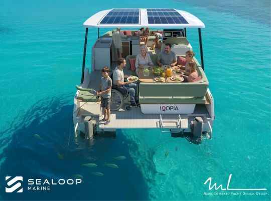 Die Verwendung einer Katamaran-Plattform erfüllt zwei Anforderungen: Stabilität beim Stehen und Zugänglichkeit. Mit einer Breite von 3,90 m bietet der Loopia eine stabile Lage vor Anker, was die Bewegung an Bord erleichtert.