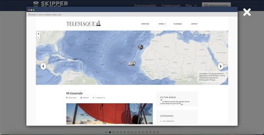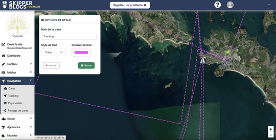 Für Alain muss ein Blog, der Langfahrtseglern gewidmet ist, einige unumgängliche Eigenschaften und Merkmale aufweisen. Die wichtigste davon ist natürlich die Möglichkeit, die Reise in ihrer Gesamtheit und im Detail zu visualisieren. Dazu wird unser Boot automatisch (oder nicht) auf einer Karte im gewählten Maßstab positioniert. Man kann also seine Navigation in Echtzeit verfolgen (mit Wetterdaten, was noch besser ist!), die Möglichkeit, die besuchten Länder sofort zu identifizieren, und die Möglichkeit, in aller Freiheit Texte, Fotos und natürlich Videos zu importieren.