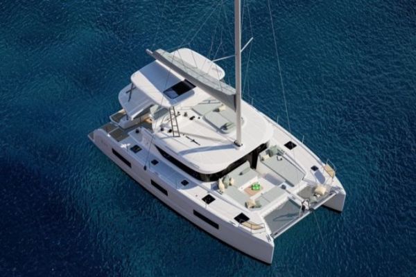 Der Segelplan bleibt im Rahmen der Standards für Fahrtenkatamarane dieser Größe. Mit 127 m2 auf dem Vorwindkurs, die sich auf das Großsegel mit Horn und die Genua verteilen, legt das Boot Wert auf Stabilität und leichte Handhabung. Der begrenzte Tiefgang von 1,25 m erleichtert den Zugang zu flachen Gebieten.