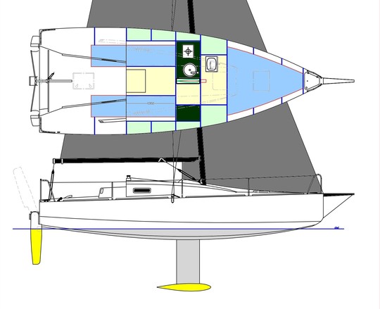 Die Perron 7,50 m gehört zu den kompakten Segelbooten, die hochseetauglich und leistungsstark sind, aber trotzdem auf der Straße transportiert werden können. Der Plan wurde für die Ateliers Pirghaye in Belgien entwickelt und basiert auf einer CP-Epoxy-Konstruktion
