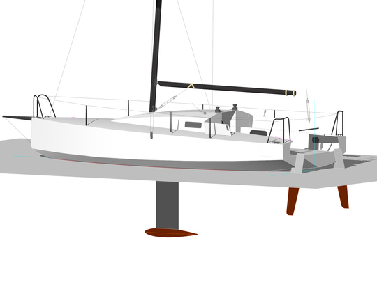 Diese zweite Konfiguration erleichtert den Zugang zu flachen Bereichen und vereinfacht das Aussetzen des Bootes. Der Ballast wird mit 475 kg angegeben.