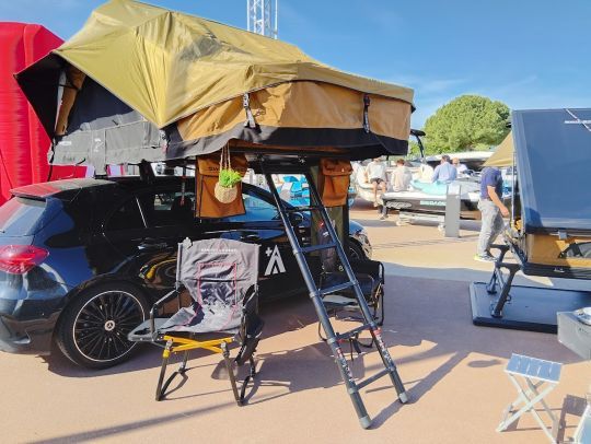 Neben den Schwimmern war ich auch von der Schweizer Marke Swisskings begeistert, die Dachzelte anbietet, die jedes Fahrzeug in ein abenteuertaugliches Fahrzeug mit maximalem Komfort verwandeln. Außerdem bieten sie eine ganze Reihe von klappbarem Zubehör wie Sitze und Tische an. Das passt sehr gut zu dem Gedanken, selbstständig und in völliger Freiheit zu wandern.